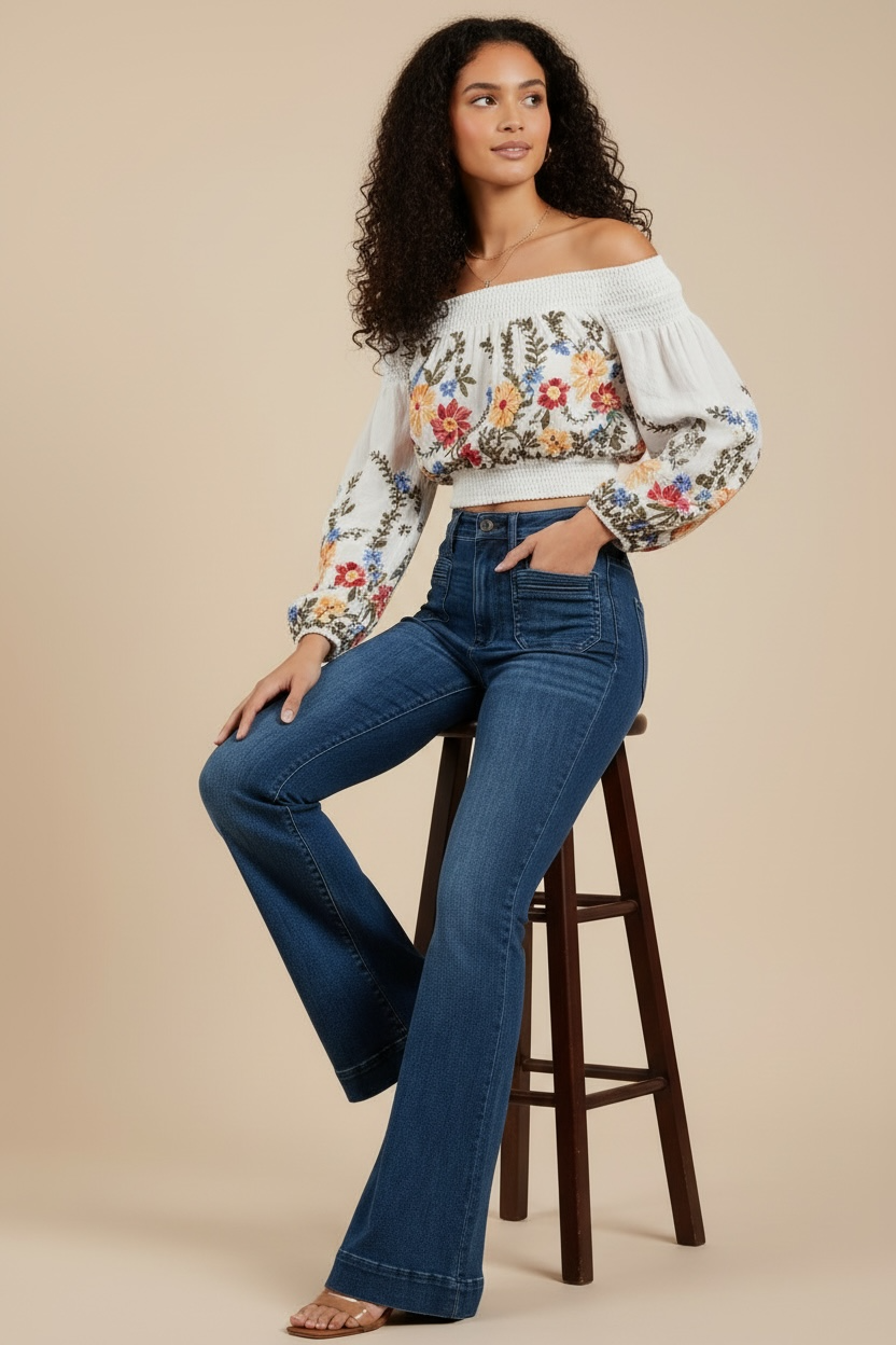Floral Embroidered Off-the-Shoulder Crop Top