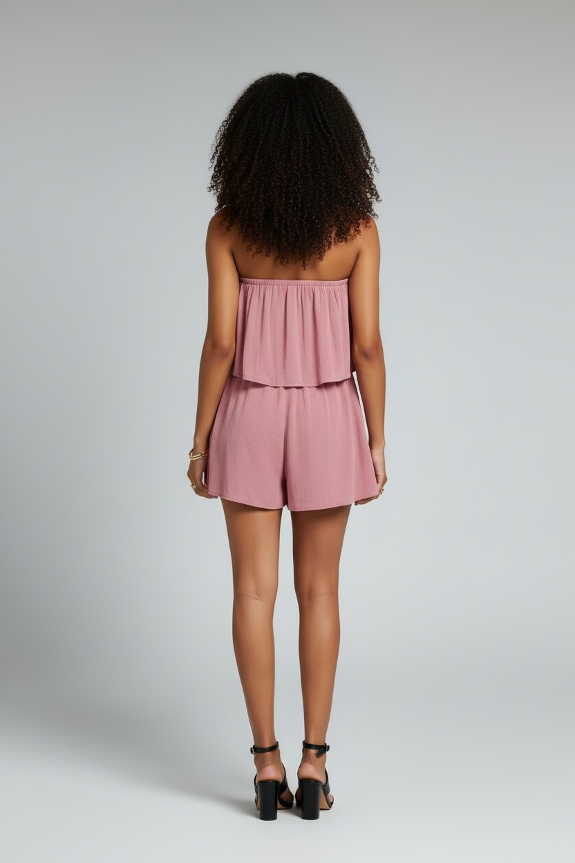Sun-Kissed Woven Crinkle Strapless Romper - Rose