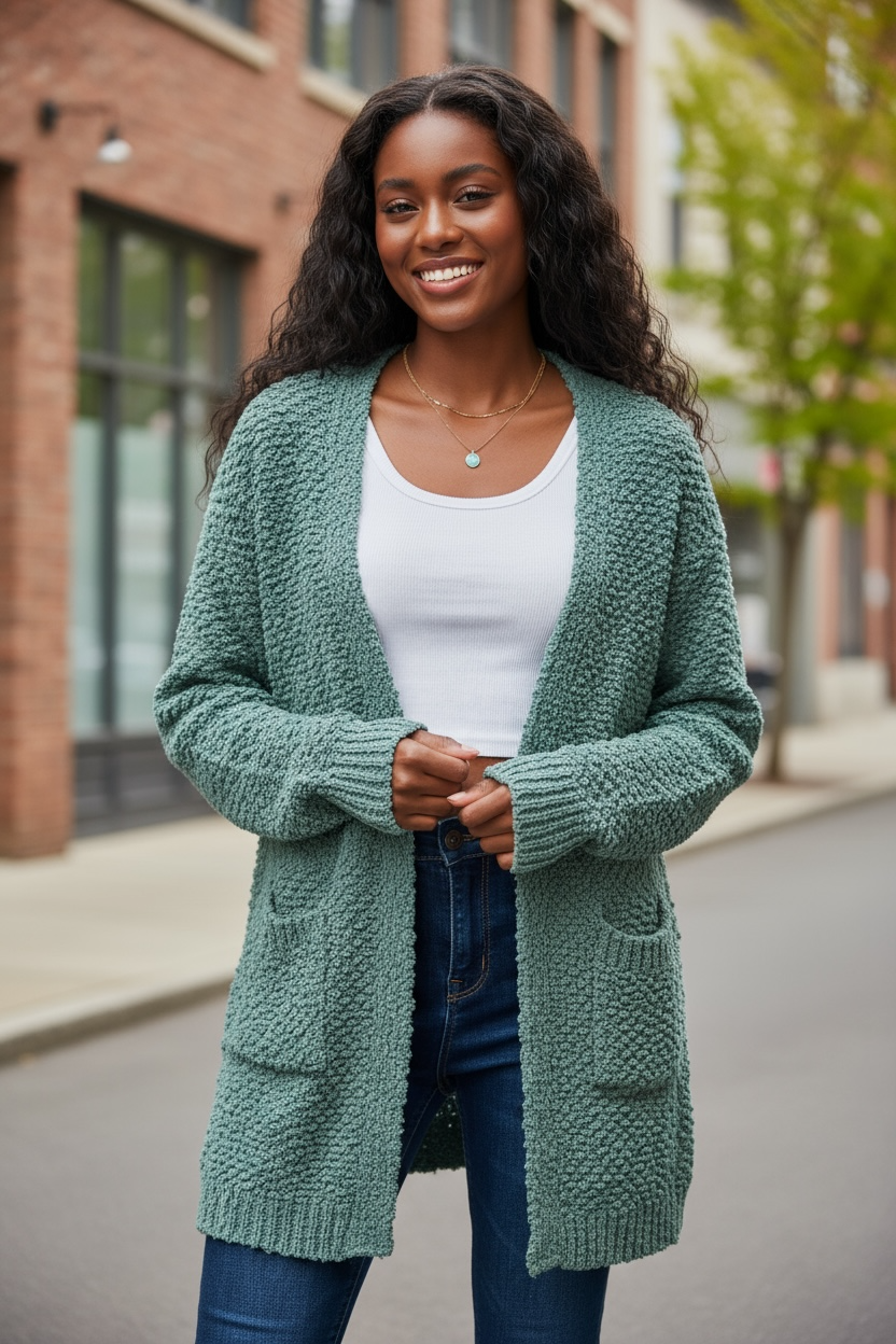 Cozy Long Sleeve Sweater Cardigan with Pockets (Ash Jade)